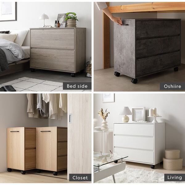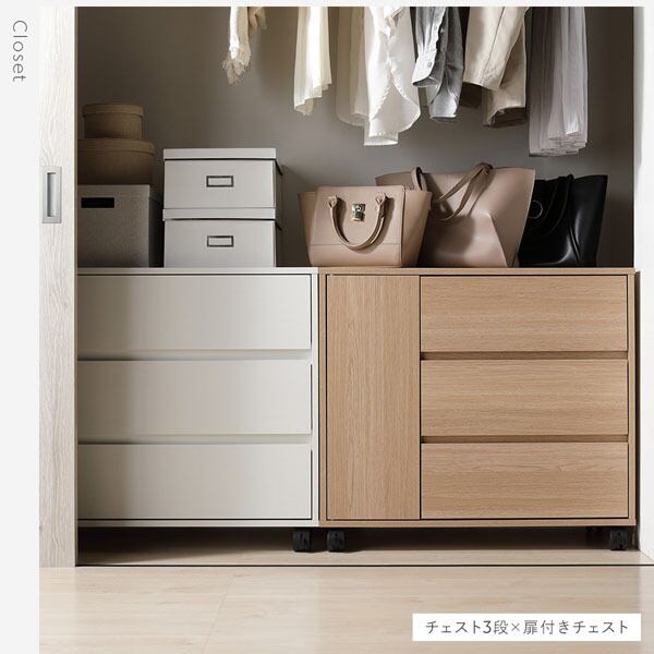 ●小物もすっきり引き出し3杯収納 化粧品や靴下などの整理にちょうどいい引き出し収納。