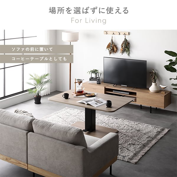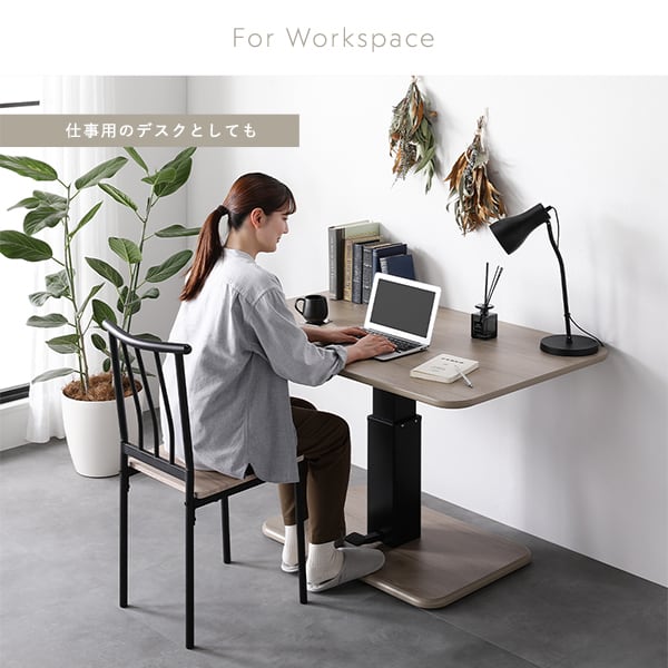 ■天板の高さを手軽に調整できる昇降式。用途に合わせてベストな高さで使えます。