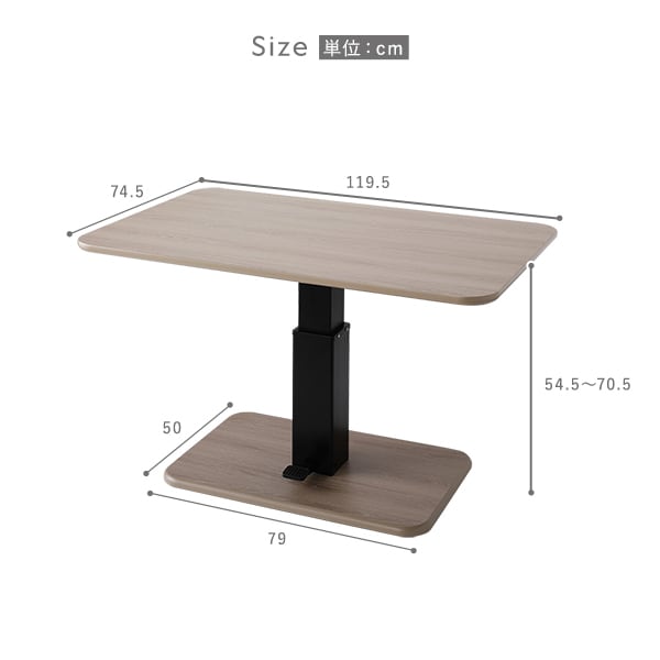 ■サイズ(約) 幅119.5×奥行74.5×高さ54.5〜70.5cm