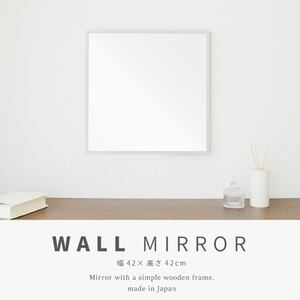 ウォールミラー 細枠正方形 幅42cm (ホワイト/白) 天然木/鏡/スリム/日本製 掛け鏡